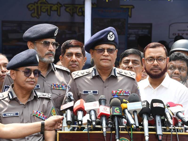 ছবি—গাবতলি বাস টার্মিনালে নিরাপত্তা ব্যবস্থা পরিদর্শন শেষে প্রেস ব্রিফিংয়ে আইজিপি।