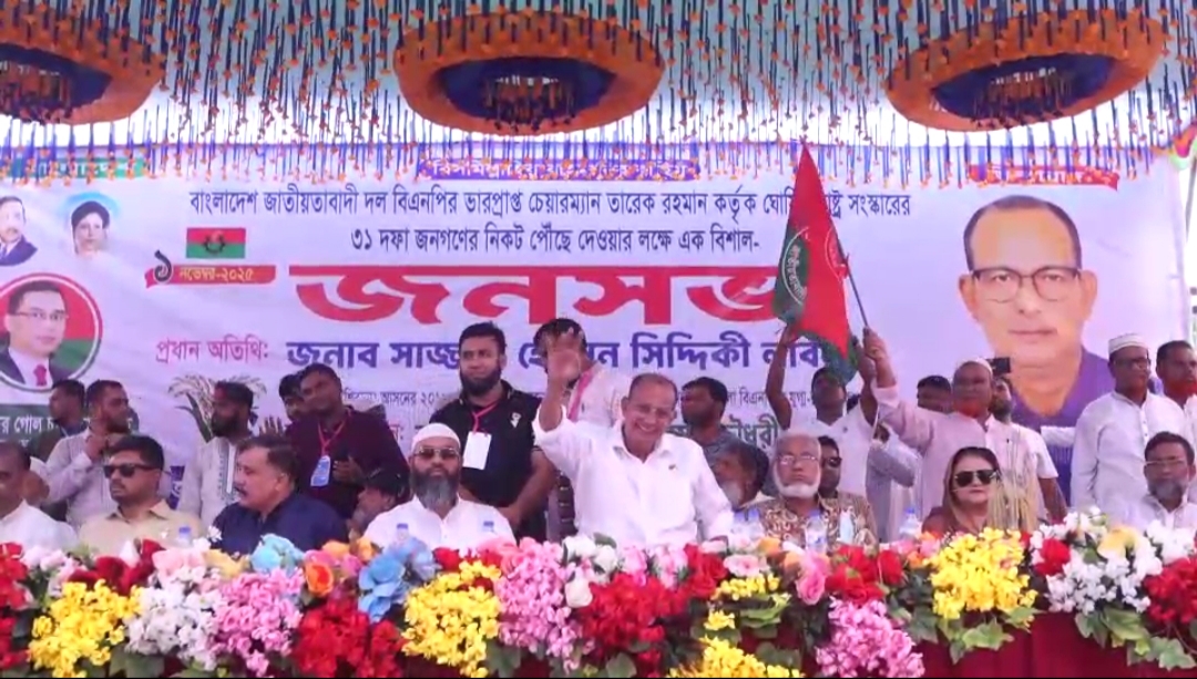 জনসমাবেশে বক্তারা বর্তমান সরকারের নানা অনিয়ম, দুর্নীতি ও জনগণের ভোটাধিকার হরণের সমালোচনা করেন এবং আগামী জাতীয় নির্বাচনে বিএনপিকে বিজয়ী করার আহ্বান জানান।