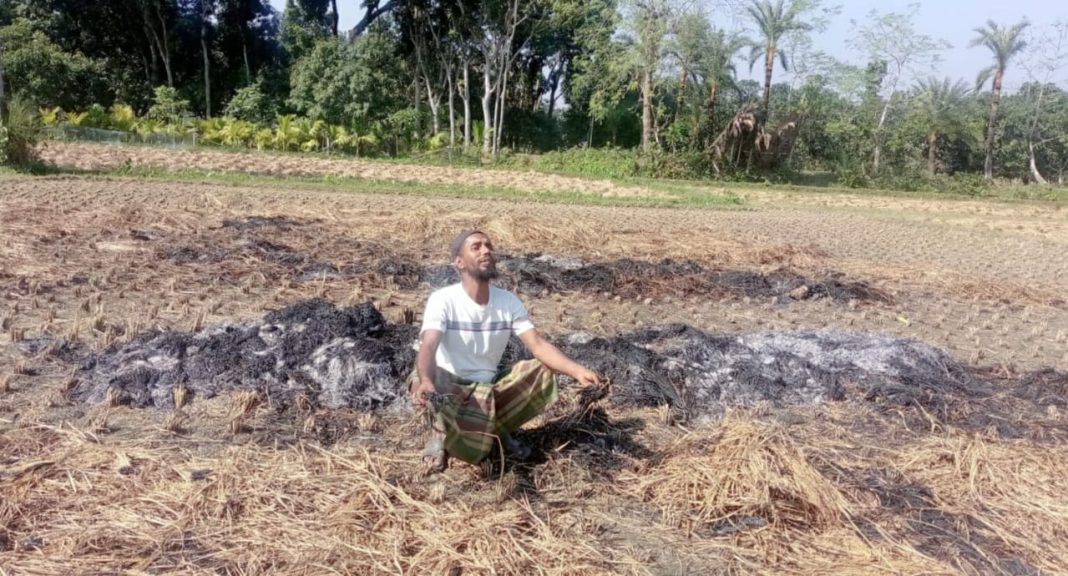 স্থানীয়রা জানান, ক্ষতিগ্রস্ত কৃষক রাজু পেশায় একজন ভাঙাড়ি ব্যবসায়ী। সংসারের বাড়তি আয় ও সন্তানদের পড়াশোনার খরচ চালাতে তিনি ১০ কাঠা জমি বন্ধক নিয়ে চাষাবাদ করছিলেন। নিজের শ্রম আর পরিবার-পরিজনের কষ্ট দিয়ে উৎপাদিত ধান কয়েকদিন ধরে কাটার পর মাঠে শুকানোর জন্য রাখা ছিল।
