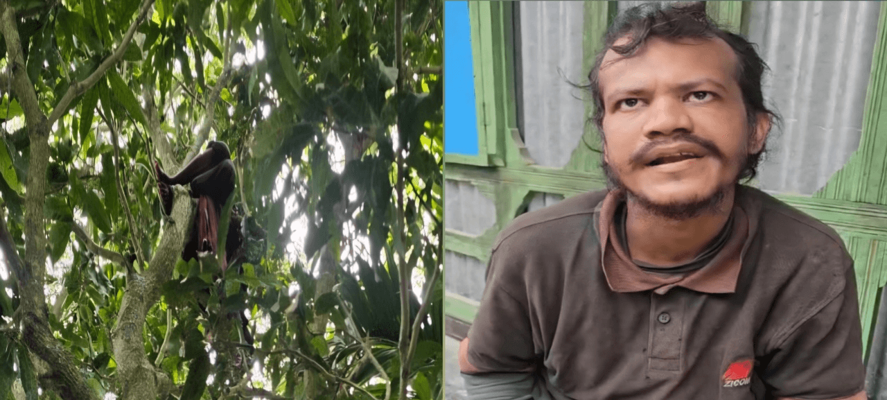 নোয়াখালীর চাটখিল উপজেলার এক অদ্ভুত ঘটনায় গাছের ওপর কালো কাপড়ে মুখ ঢাকা অবস্থায় এক যুবককে পড়ে থাকতে দেখে স্থানীয়দের মধ্যে ব্যাপক আতঙ্ক ছড়িয়ে পড়ে। প্রথমে সবাই এটিকে ঝুলন্ত লাশ বলে ধারণা করলেও পরে পুলিশ ও ফায়ার সার্ভিসের সদস্যরা গিয়ে তাকে জীবিত উদ্ধার করেন।