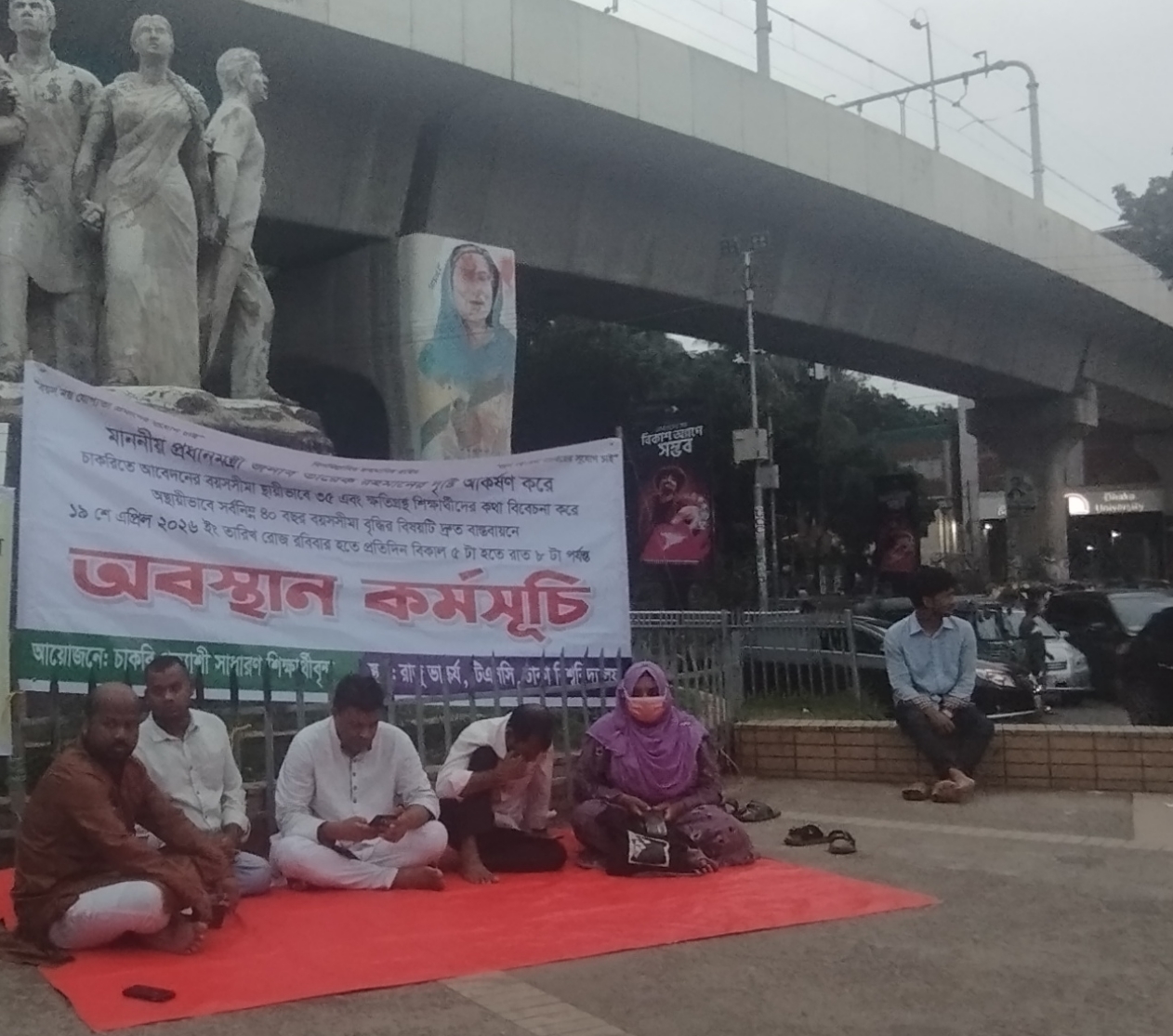 ঢাকা বিশ্ববিদ্যালয়ের টিএসসি এলাকায় রাজু ভাস্কর্যের পাদদেশে চাকরি প্রত্যাশী সাধারণ শিক্ষার্থীদের উদ্যোগে অবস্থান কর্মসূচি পালিত হচ্ছে। সোমবার (২৭ এপ্রিল) বিকেল ৫টা থেকে এ কর্মসূচি শুরু হয়।