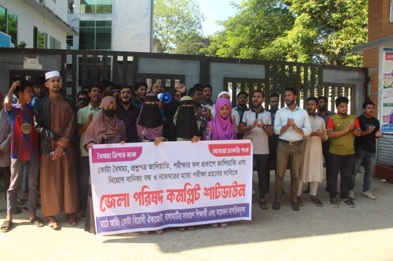 শনিবার রাতে শহরের বনরূপা এলাকায় অনুষ্ঠিত এক জরুরি সংবাদ সম্মেলনে সংগঠনের নেতা নুরুল আলম জানান, সরকারি প্রজ্ঞাপন অনুযায়ী ৯৩/৭ কোটা অনুসরণ করে স্বচ্ছ নিয়োগের দাবিতে জেলা পরিষদকে স্মারকলিপি দেওয়া হলেও তাদের প্রস্তাবে সাড়া মেলেনি। বরং জেলা পরিষদের পক্ষ থেকে ‘অশোভন আচরণ’ করায় ক্ষুব্ধ শিক্ষার্থীরা ৩৬ ঘণ্টার হরতালের ডাক দিয়েছিলেন।