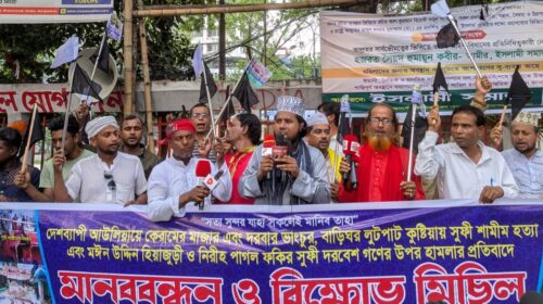 মাজারে হামলার প্রতিবাদে তরিকত-এ-ইসলামের মানববন্ধন