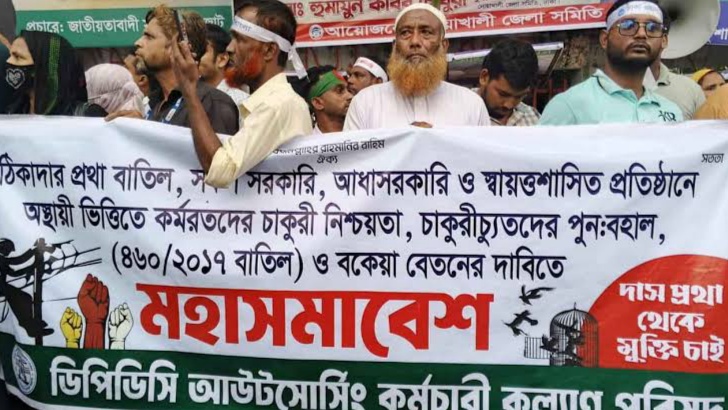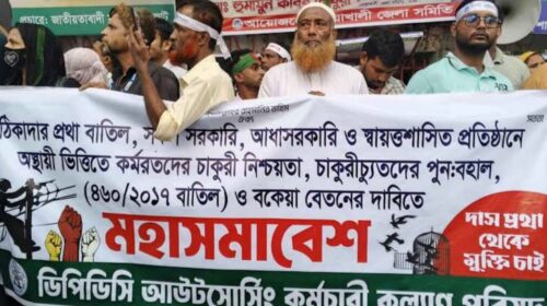 ডিপিডিসি আউটসোর্সিং কর্মীদের মানববন্ধন, টেন্ডার বন্ধ ও ভাতা প্রদানের দাবি