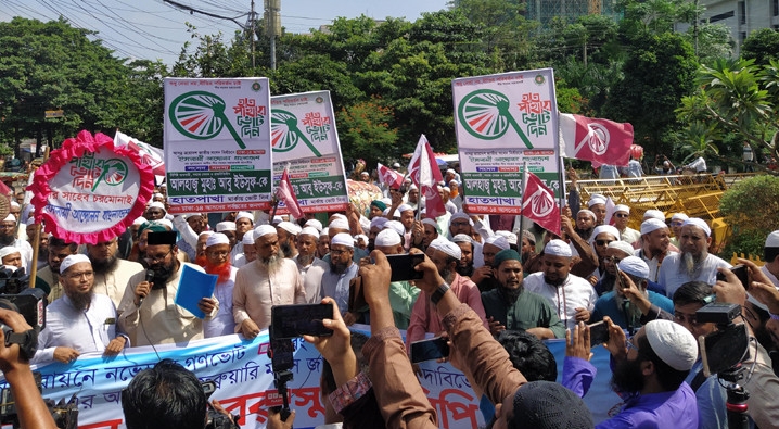 এ সময় তাদের নভেম্বরে গণভোট, জোট হলেও নিজ দলের প্রতীকে ভোটসহ বিভিন্ন দাবিতে স্লোগান দিতে দেখা যায়। একইসঙ্গে দাবি আদায় না হলে নুরুল হুদা কমিশনের মতো বর্তমান কমিশনেরও পরিণতি হবে বলে হুঁশিয়ারি দেন তারা।