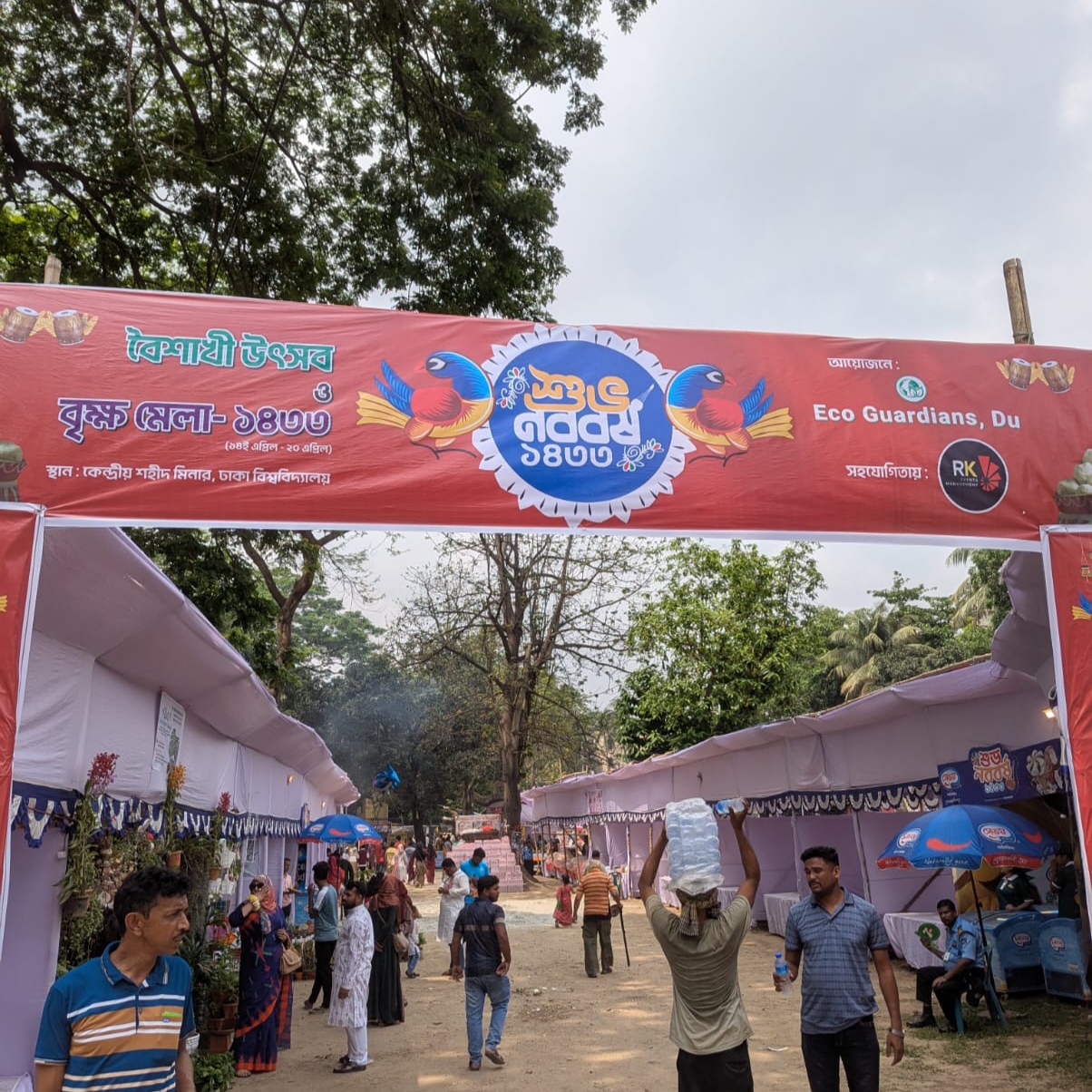 ঢাকা বিশ্ববিদ্যালয়ের ‘ইকো গার্ডেন (DU)’ এর উদ্যোগে আয়োজিত এই উৎসব ও বৃক্ষমেলা আগামী ১৪ এপ্রিল থেকে ২০ এপ্রিল পর্যন্ত চলবে। এতে মোট ৩২টি স্টল অংশগ্রহণ করছে, যেখানে বিভিন্ন প্রজাতির গাছপালা, পরিবেশবান্ধব পণ্য এবং বৈশাখী সামগ্রী প্রদর্শন ও বিক্রি করা হচ্ছে।