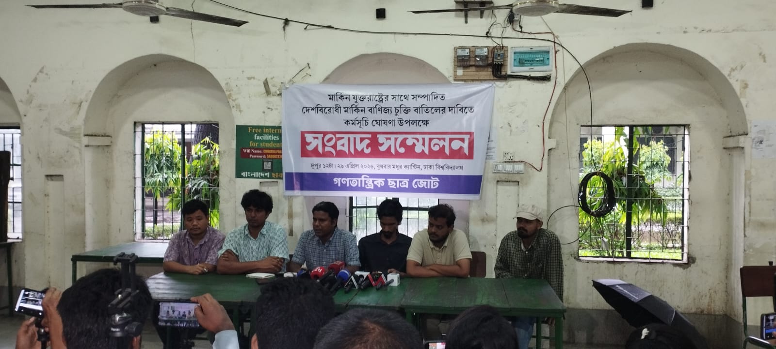 রাজধানীর ঢাকা বিশ্ববিদ্যালয়ের মধুর ক্যান্টিনে গণতান্ত্রিক ছাত্র জোটের উদ্যোগে একটি সংবাদ সম্মেলন অনুষ্ঠিত হয়েছে।