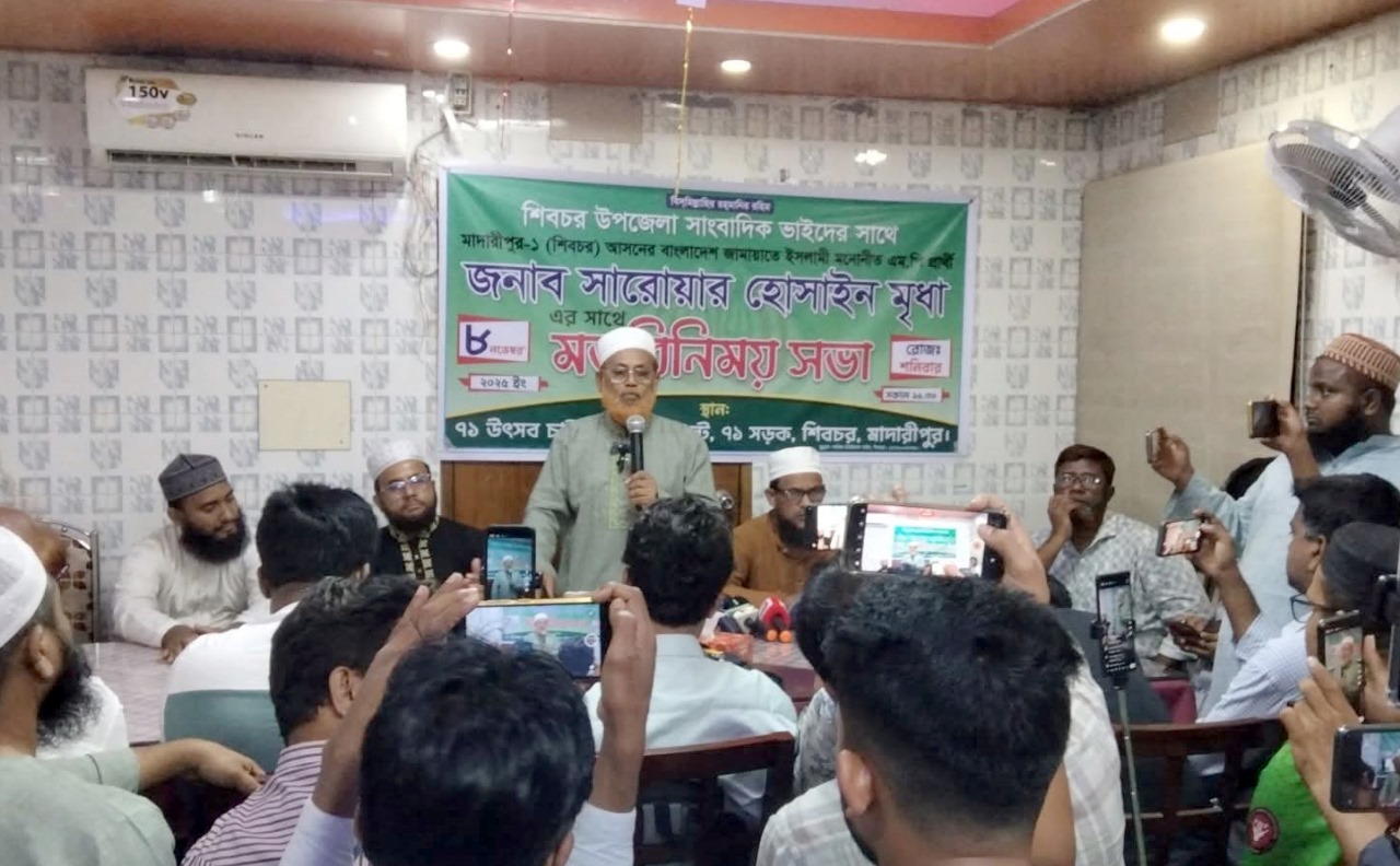 আসন্ন ত্রয়োদশ জাতীয় সংসদ নির্বাচনকে সামনে রেখে মাদারীপুর-১ (শিবচর) আসনে বাংলাদেশ জামায়াতে ইসলামীর মনোনীত প্রার্থী স্থানীয় সাংবাদিকদের সঙ্গে মতবিনিময় সভা করেছেন।