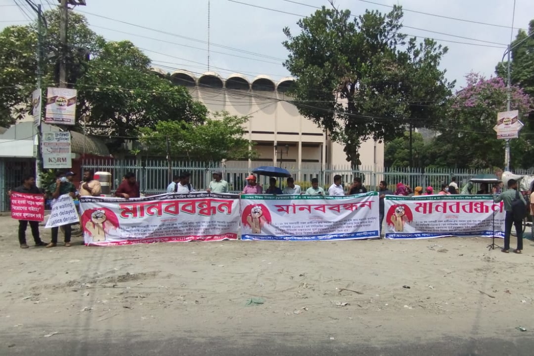 মানববন্ধনে উপস্থিত ছিলেন শিরিনা আক্তার, মুনিয়া তাসমিন, খোরশেদ আলম এবং মেহেদী হাসানসহ অন্যান্য প্রার্থীরা।