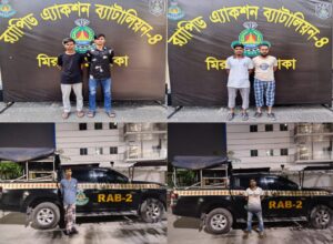 অন্যদিকে, এ ঘটনায় জড়িত থাকার অভিযোগে মো. ফালান মিয়া (৪২), মো. রুবেল (৪২), মো. স্বপন কাজী (৩৬) এবং মো. শাওন হোসেন (২৫) নামের আরও চারজনকে র্যাব-৪ পৃথক অভিযানে গ্রেপ্তার করে।