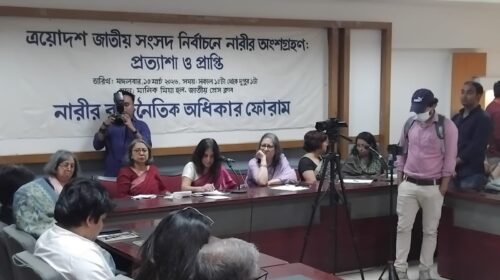 নারীর রাজনৈতিক অধিকার ফোরামের উদ্যোগে জাতীয় প্রেসক্লাবের তফাজ্জল হোসেন মানিক মিয়া মিলনায়তনে আজ অনুষ্ঠিত হয়েছে “ত্রয়োদশ জাতীয় সংসদ নির্বাচনে নারীর অংশগ্রহণ: প্রত্যাশা ও প্রাপ্তি” শীর্ষক আলোচনা সভা। সকাল ১০:৪৫ থেকে…