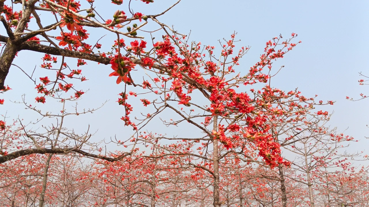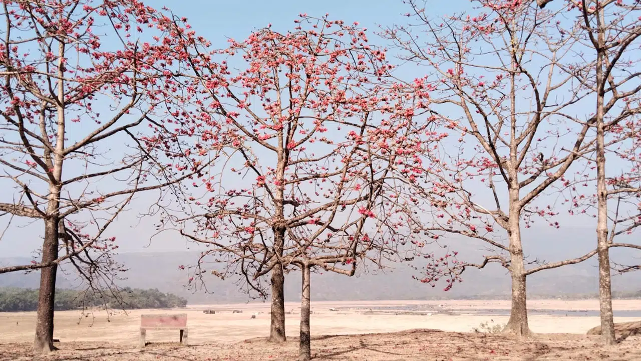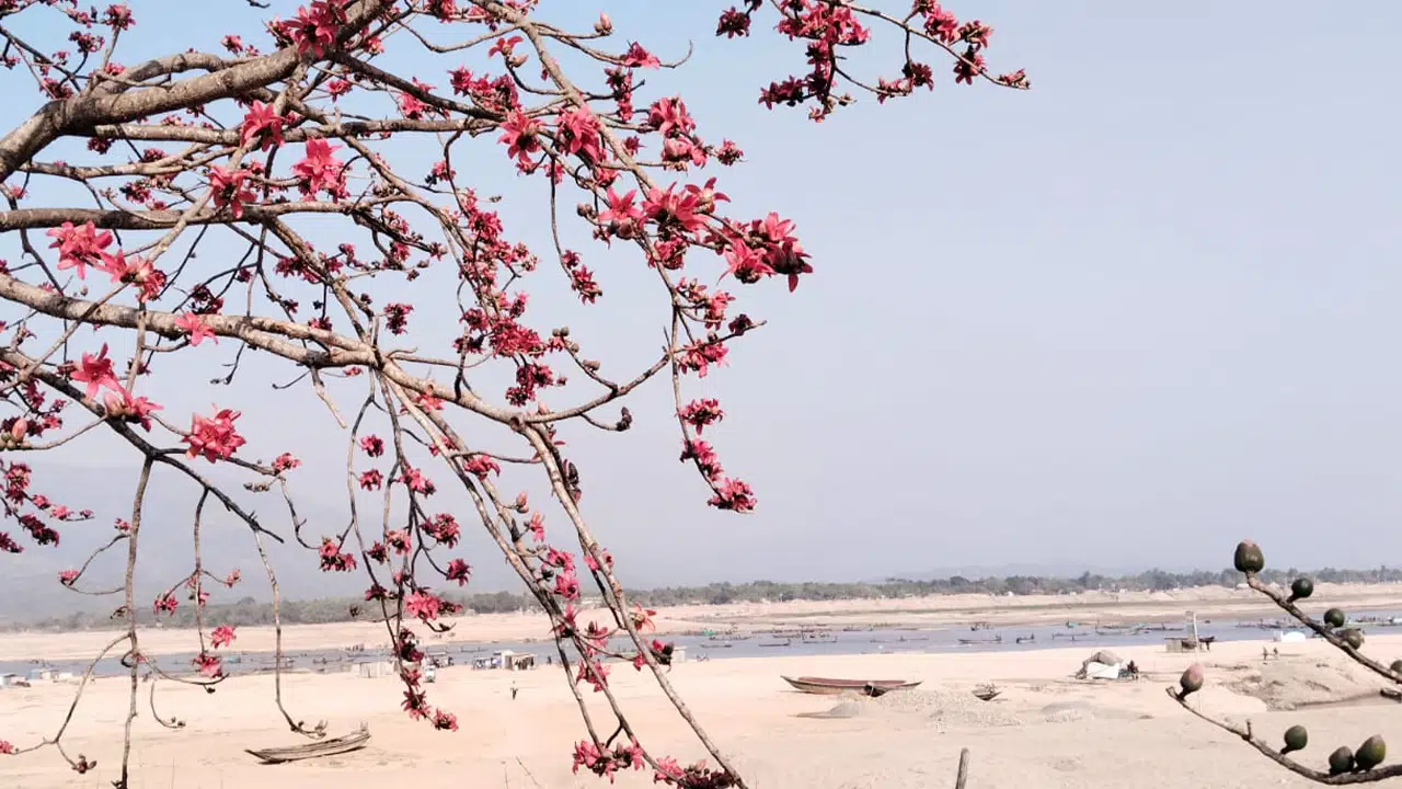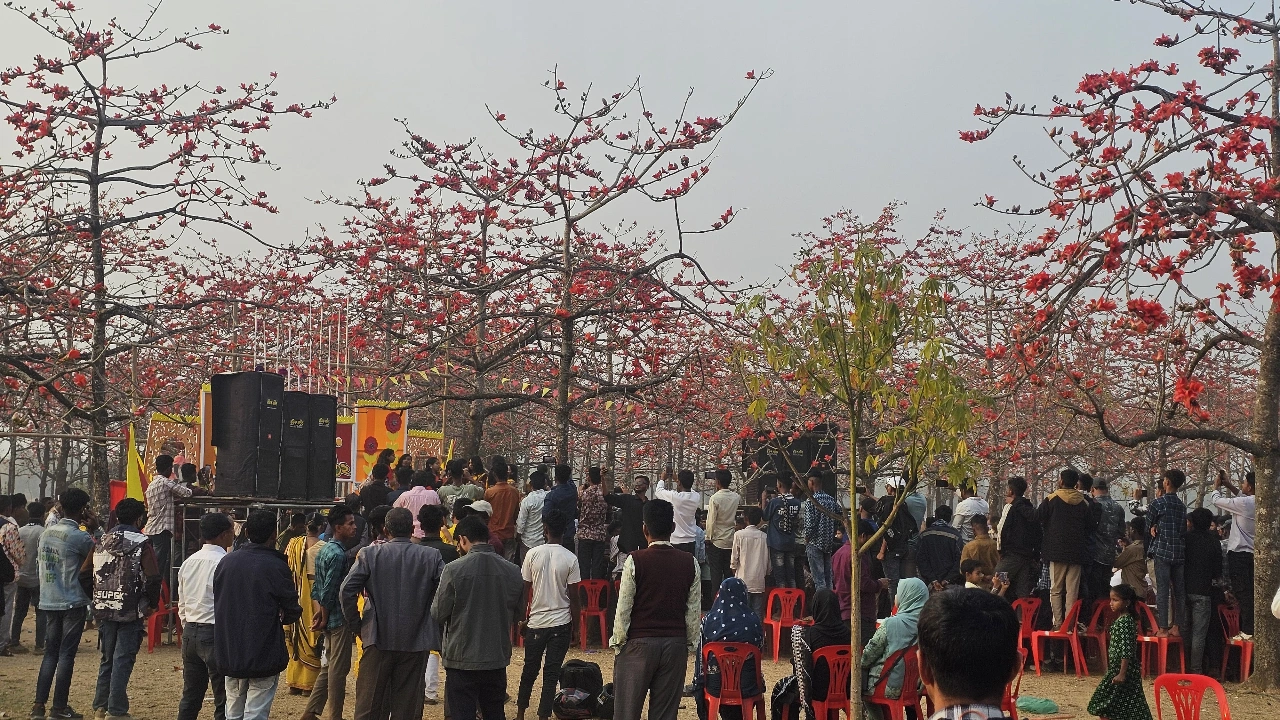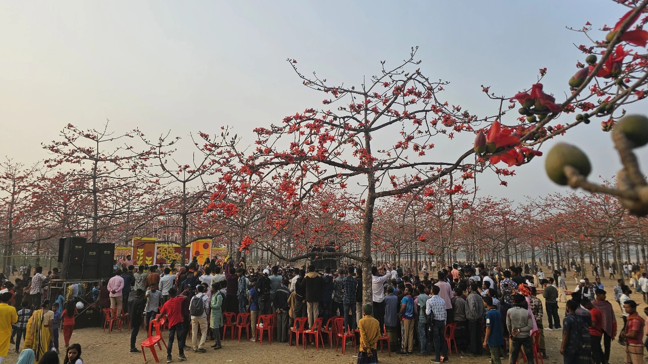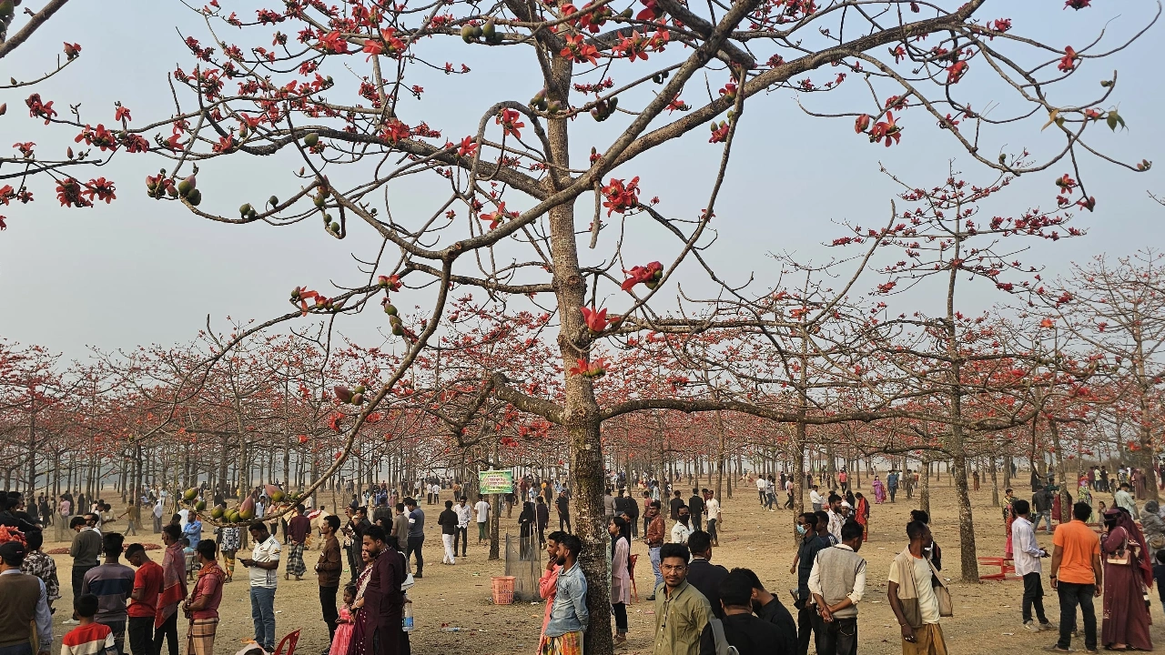তাহিরপুরে শিমুল বাগানে দর্শনার্থীদের উপচে পড়া ভিড়।